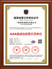 全国诚信示范单位证书